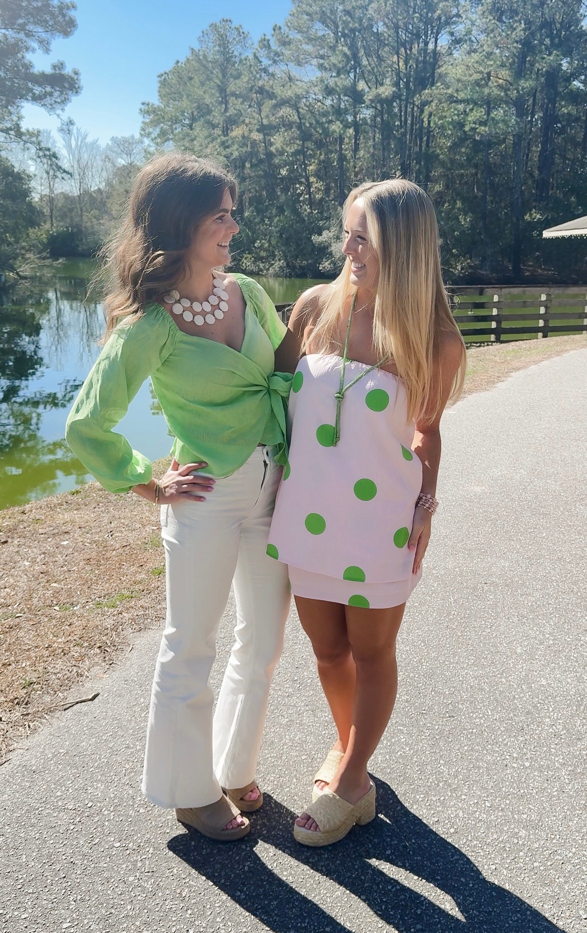 A polka dot strapless top featuring an elasticized neckline for a secure and comfortable fit. Finished with a concealed back zipper closure and side slit detail. Paired with a mini skirt featuring a clean, straight silhouette. Designed with a smooth waistband and a flattering fit. Finished with a concealed side zipper closure